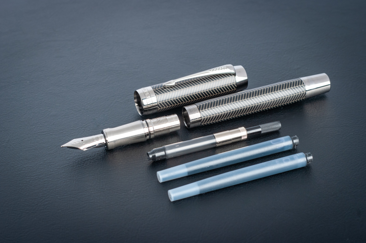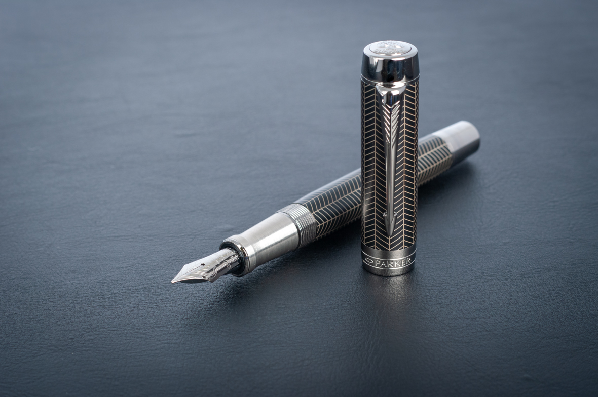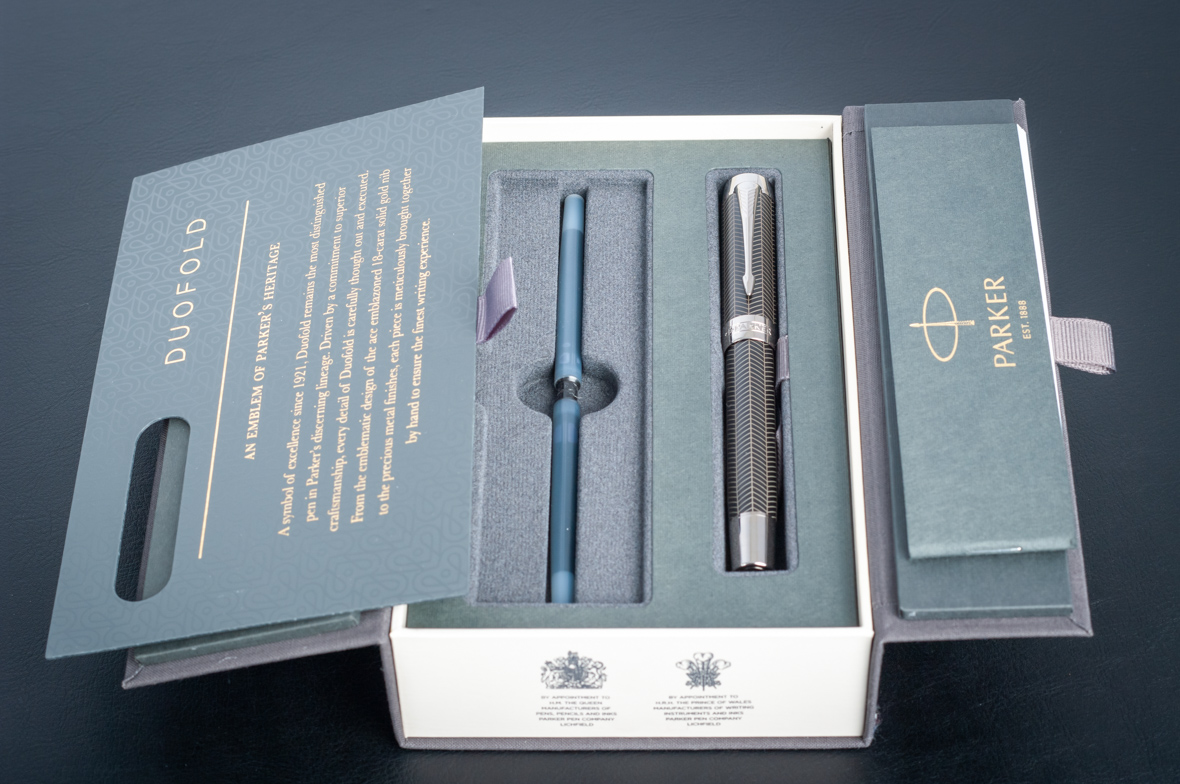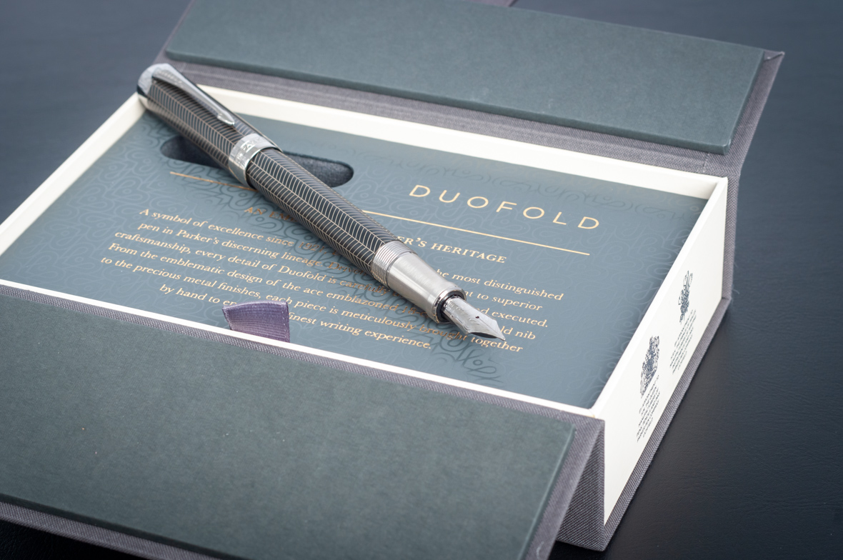 Перьевая ручка Parker Duofold Prestige Centennial Black Chevron CT от официального дилера Parker в Коврове. Вы можете дополнительно заказать гравировку, которая подчеркнет Вашу оригинальность и придаст памятность статусному подарку. Все ручки Паркер поставляются в фирменном футляре.